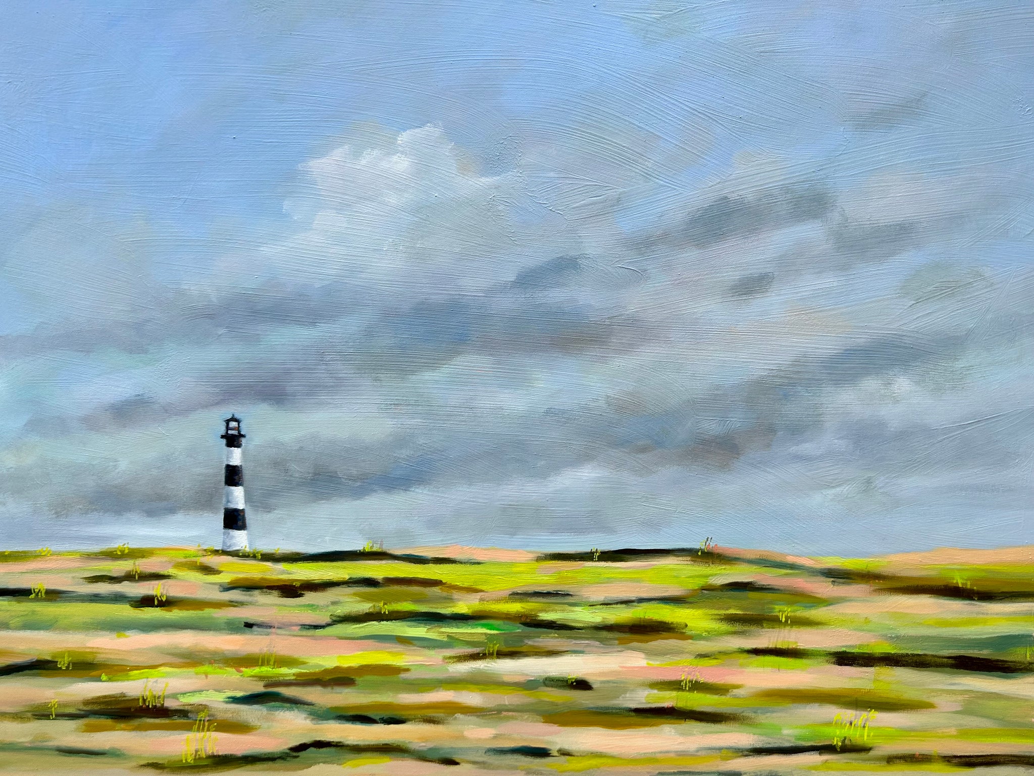 Taylor Williams works primarily in oil paints capturing the beauty of nature and familiar Outer Banks landscapes of her childhood. She is skilled in capturing the calmness of the sky, the brilliance of the ocean, and the tumult of a rising ocean storm. Her work has been featured in several art shows since her public debut in 2019 and she continues to master her skill in her hometown of Southern Shores. You can find her at one of the many vendor events up and down the Outer Banks throughout the year or purchase her work at her website Taylor Williams Studio.