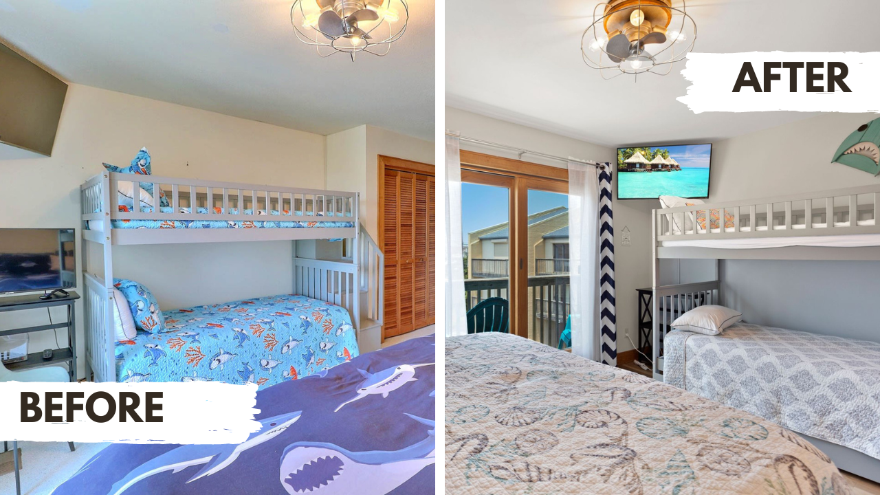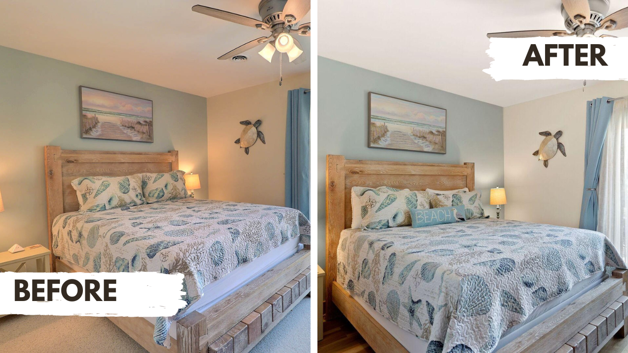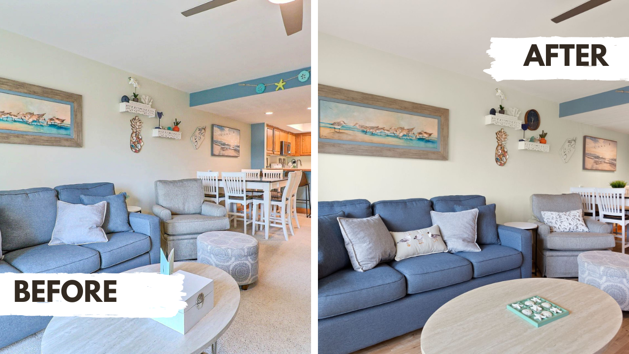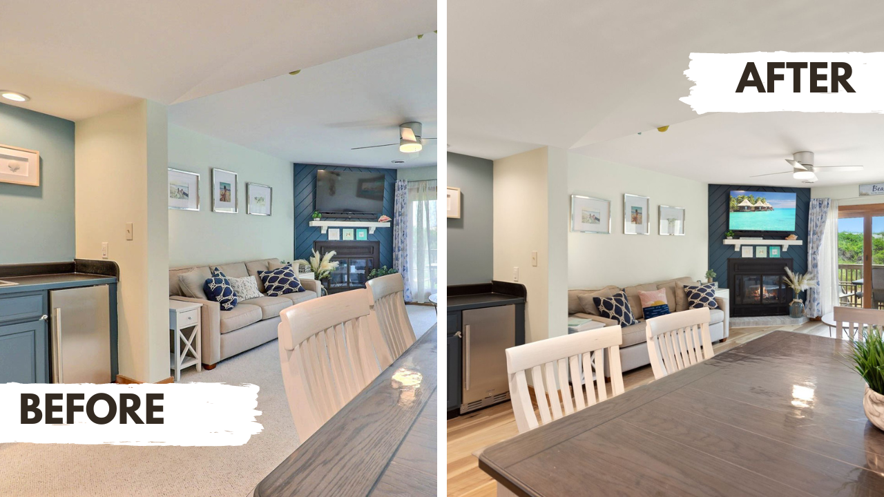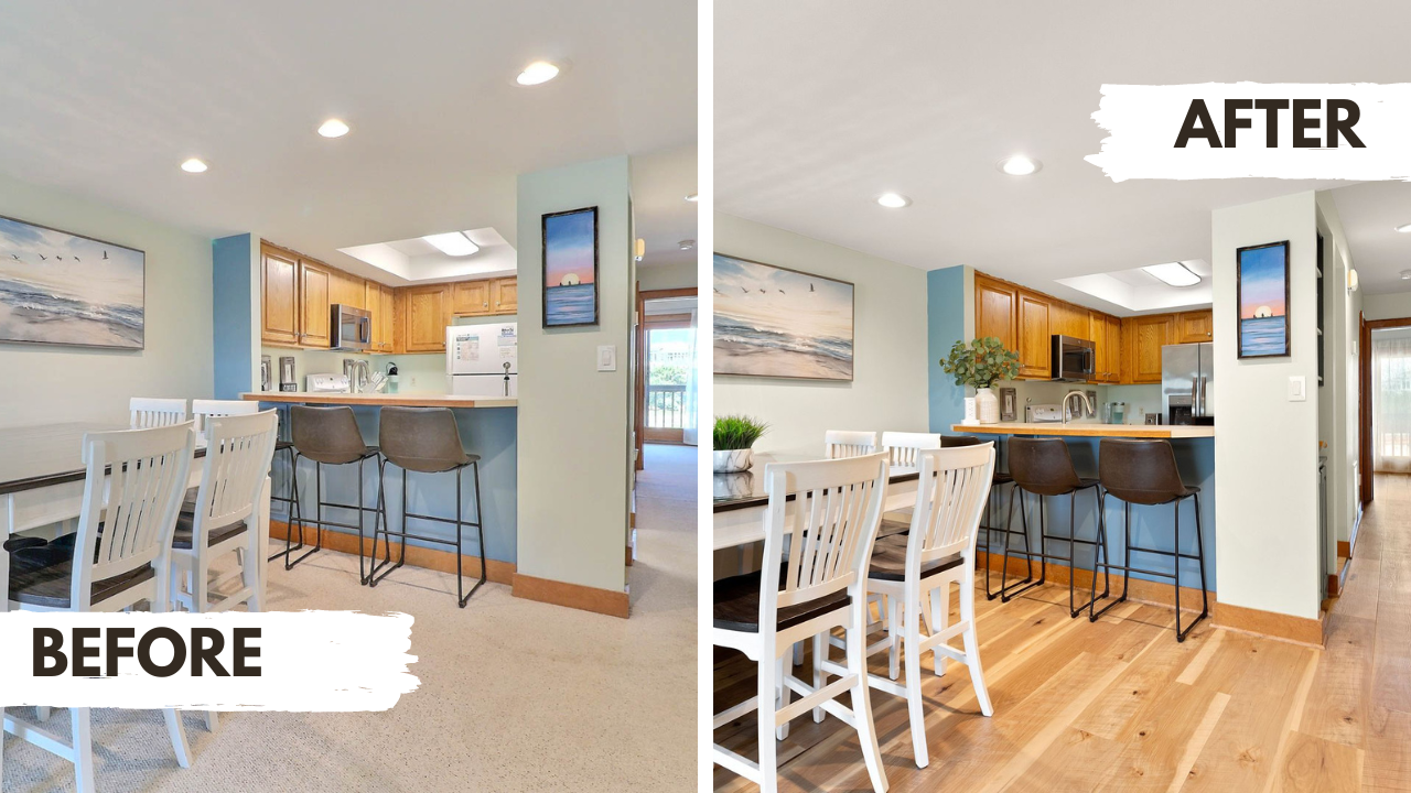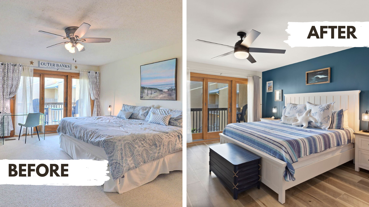 At Seaside Vacations, we love your home like you do and we're excited to celebrate when our homeowners complete renovations and update their vacation rentals to help all our guests have an unforgettable Outer Banks vacation experience! We're thrilled to share with you the renovations and updates for QCB5 - Saltaire Sunrise! This 3-Bedroom, 3-Bathroom oceanfront condo boasts brand new flooring throughout the home, new furniture, new mattresses, and a remodeled main-level bathroom! Take a look at these amazing before-and-after photos of all the hard work and dedication put into the home by these loving owners. And don't let your stay at Saltaire Sunrise get away! Book now to take advantage of these reservations and enjoy the Outer Banks vacations of your dreams at Saltaire Sunrise in Nags Head.