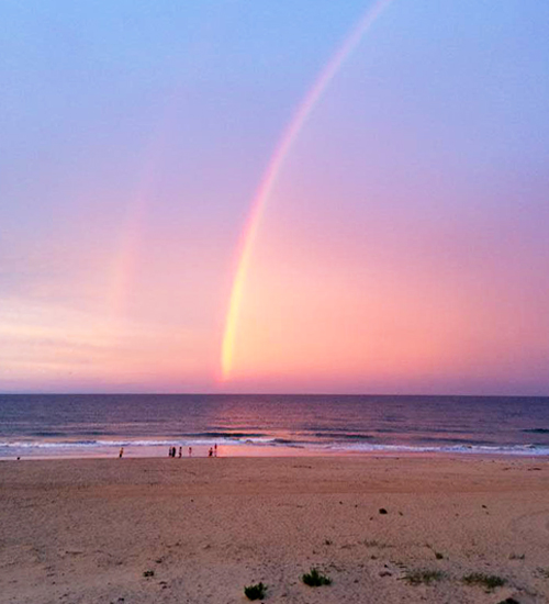 An (almost double) rainbow out of the ocean! (Submitted by Jamie J.)
