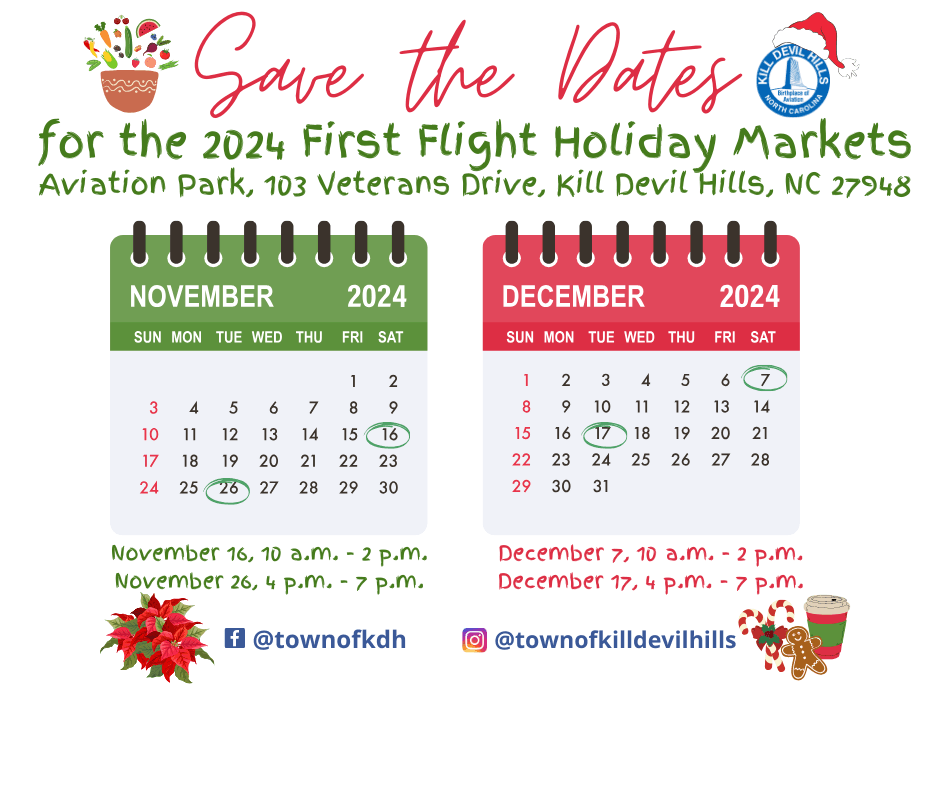 About: The First Flight Holiday markets will showcase local vendors, offering one-of-kind products and goodies where everything is homegrown, hand-baked, and homemade!